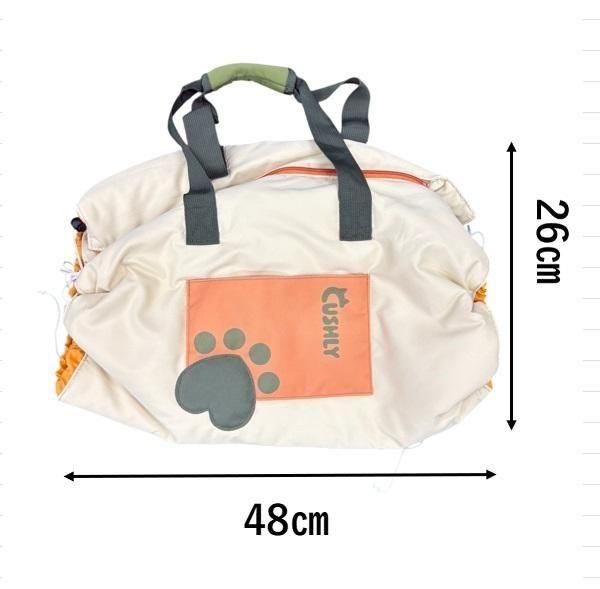 外側ポケットには肉球デザインをプリント。かわいさと実用性を兼ね備えています。