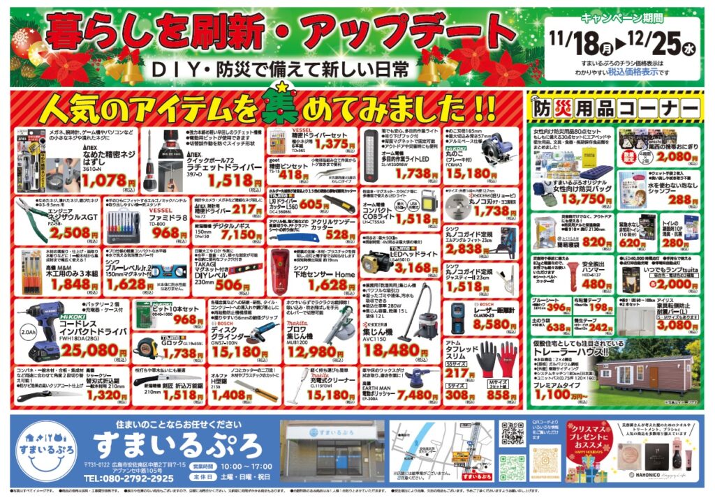 防犯対策や災害に備えましょう!プレスリリース2024.11.09241106_すまいるぷろ広島_B3_表ダウンロード241107_広島_高知_共通_B3_うらダウンロードFOLLOW コピーしました 耐久性抜群!自然の風合いを楽しむWPCウッドデッキの魅力あなたの愛犬がさらにキュートに!心ときめくペット撮影会&スマホ講座、クリスマスマルシェでお待ちしています♡RECOMMEND プレスリリース2024.12.27耐久性抜群!自然の風合いを楽しむWPCウッドデッキの魅力 イベント2024.11.01あなたの愛犬がさらにキュートに!心ときめくペット撮影会&スマホ講座、クリスマスマルシェでお待ちしています♡ プレスリリース2024.12.27プロ監修 みんなの体力測定 プレスリリース2025.04.28猫も“ととのう”時代到来!